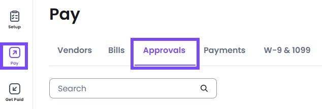2 - Go to the Pay dashboard and select the Approvals tab. You’ll be taken to Approval workflow settings.