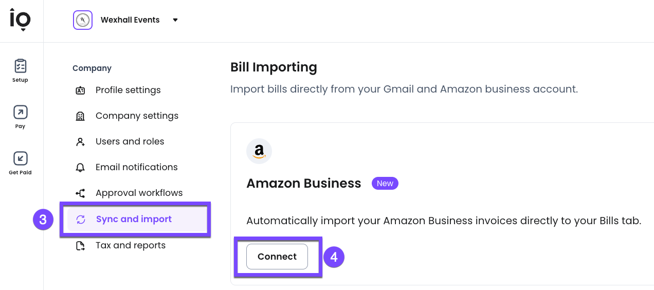 You can also sync your Amazon Business account and Melio accounts from Settings. Here's how: