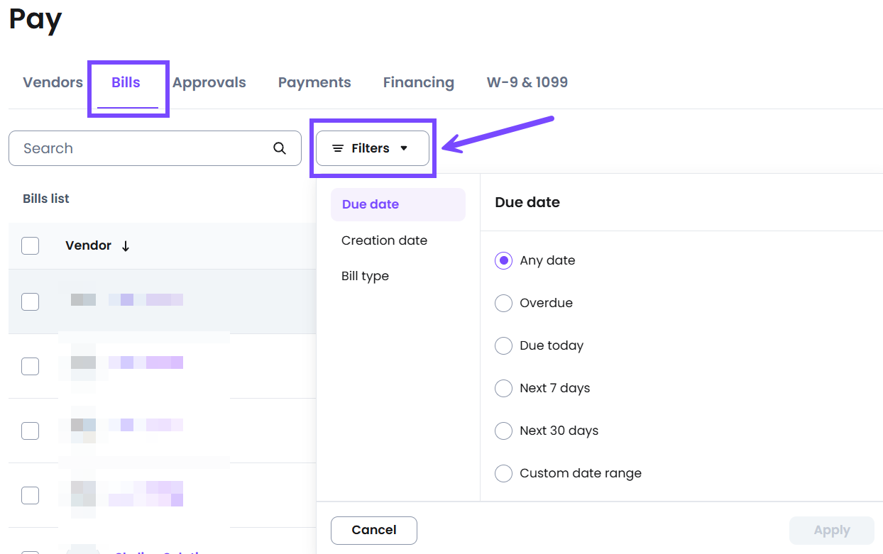 2 - You’ll be directed to the Bills tab, filtered by overdue bills.