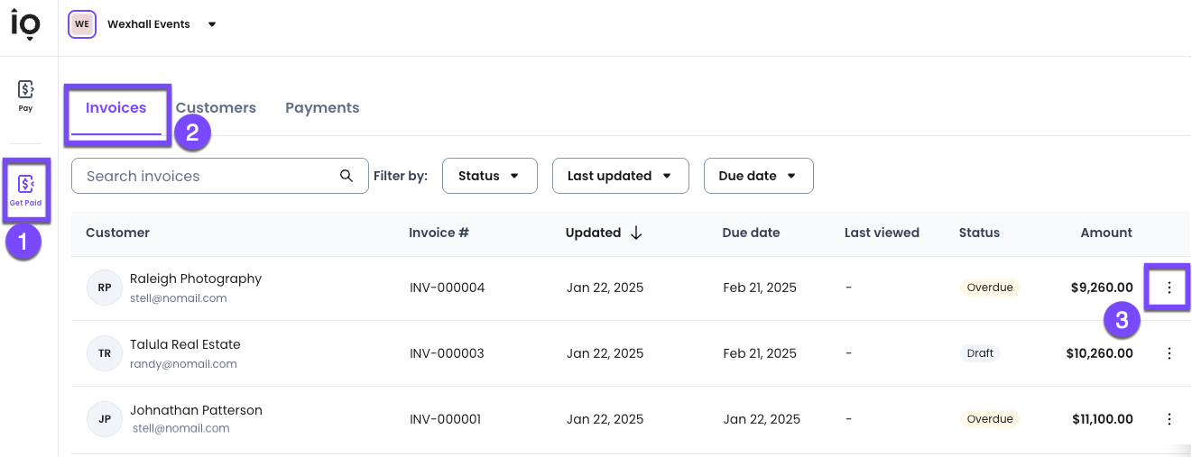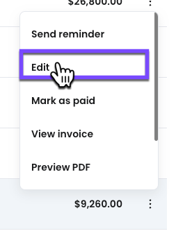 3- Select the three dots on the right side of the invoice.