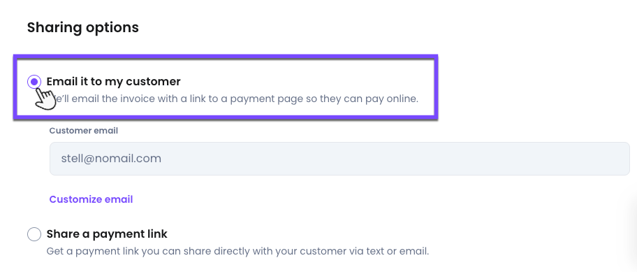 9- Under sharing options, choose how you want to share your invoice.