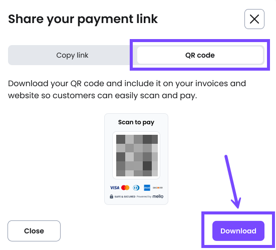 That’s it. You can send the link or QR code to your customer, which they can use to make payments.