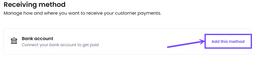 Please note: If you don’t have a receiving method set up yet, select Add this method to add one.