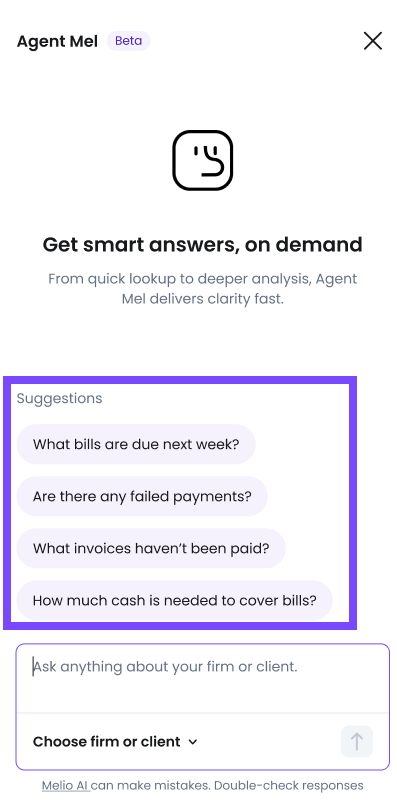Agent Mel is your go-to resource for all things related to your clients' accounts payable. It can assist with: