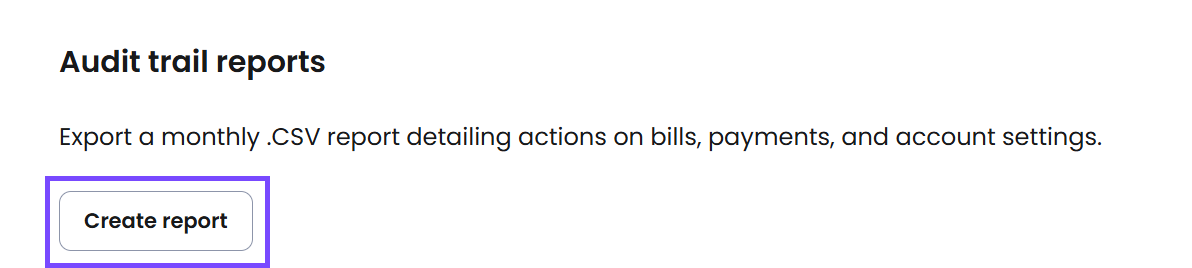 Audit trail reports can only be created and downloaded by Melio account Owners and Admins. Learn more about available user roles and permissions in this article.