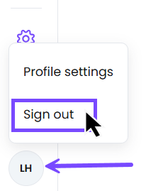 To sign out, select the circle icon in the bottom left corner. Then, select Sign out.
