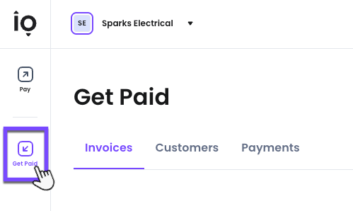 1- In your Melio dashboard, select Get Paid from the left sidebar.