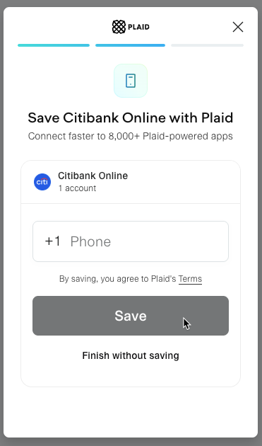 15- Select Save to save your bank account with Plaid, or finish without saving.