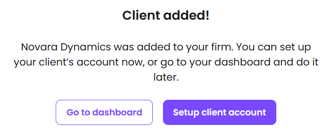 - The client's account will appear in your firm's account as pending until they accept your request.