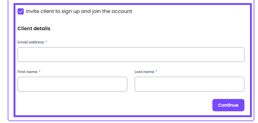 4 - You will be prompted to a page where you need to enter your client’s details: