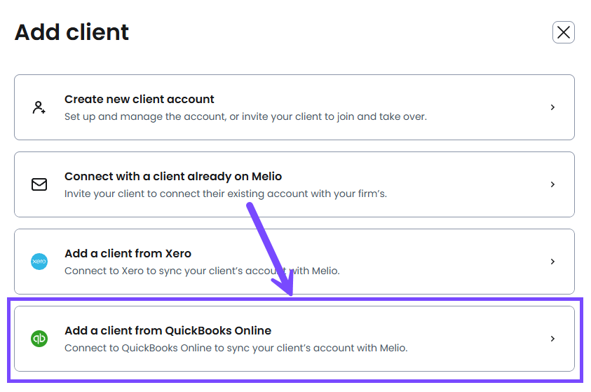 3 - Select Add a client from QuickBooks Online on the Add client page.