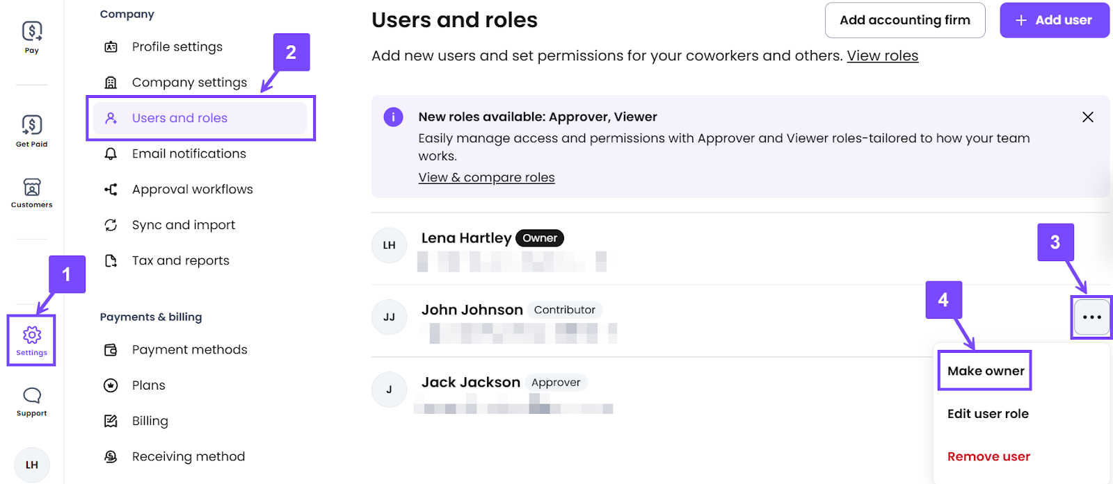 Every Melio account can have one account owner only. If you’re currently the account owner and would like to assign this role to someone else, this article will walk you through the process.