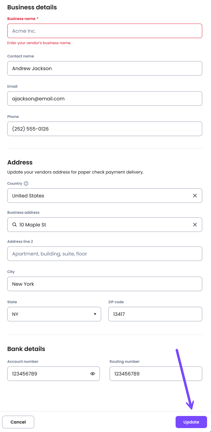 We strongly recommend including as many optional fields as possible. Providing complete vendor information helps ensure a smoother import process and reduces the need for manual edits later.
