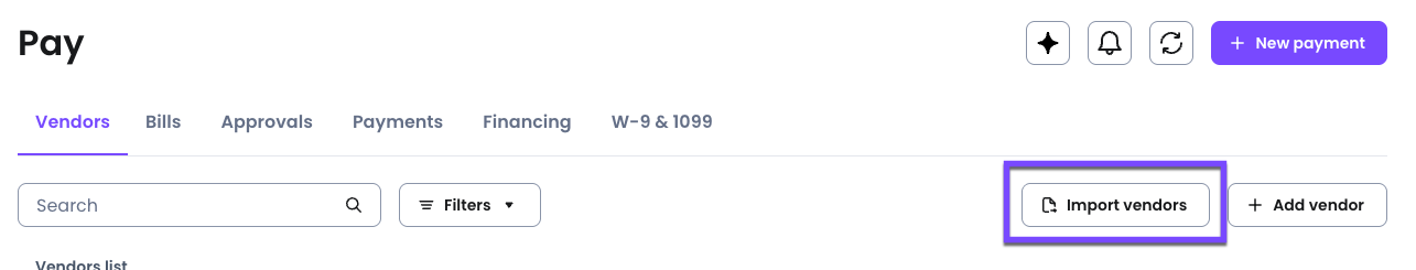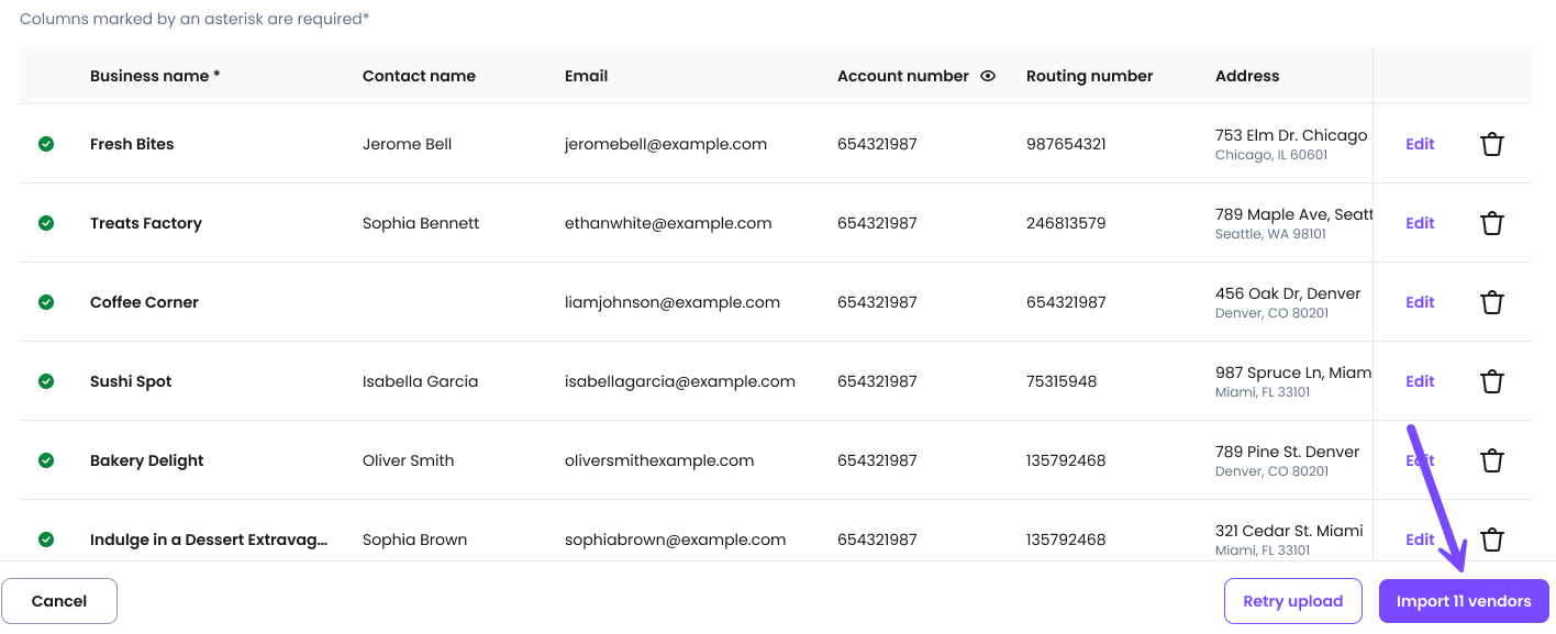 5 - After reviewing the entire list, select Import vendors at the bottom right.