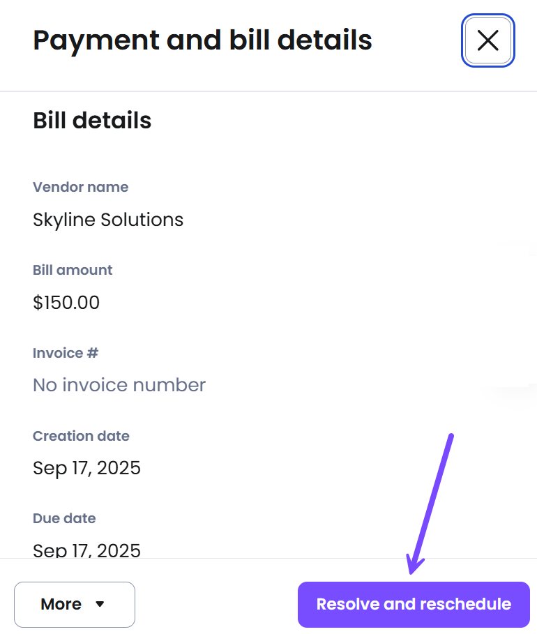 1 - From the Payment and bill details screen, select Resolve and reschedule at the bottom of the screen.