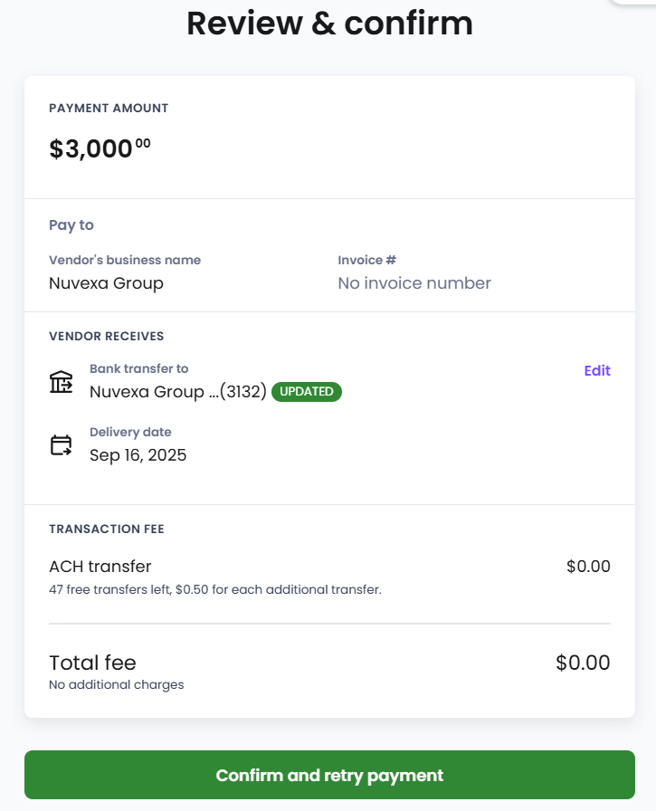We understand that a failed payment can be frustrating. If your ACH (Automated Clearing House) payment wasn't delivered to your vendor, you'll receive an email notification from Melio.