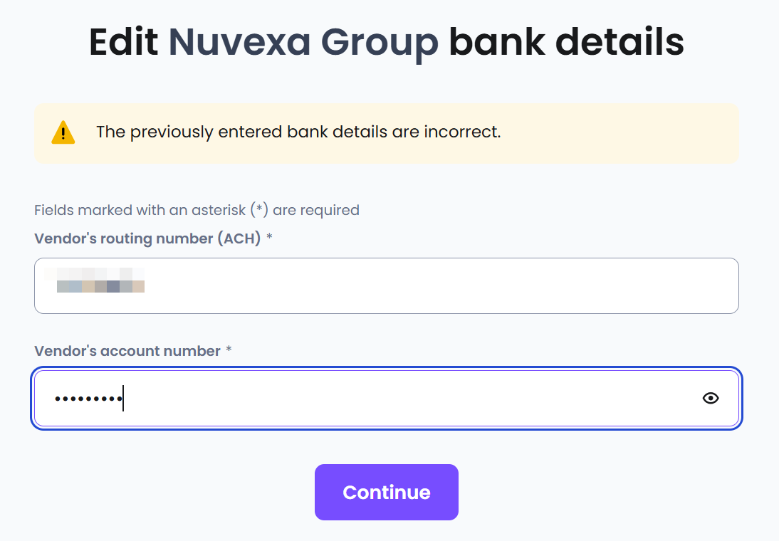 2 - Review and change the receiver's bank account information if needed, and then select Continue.
